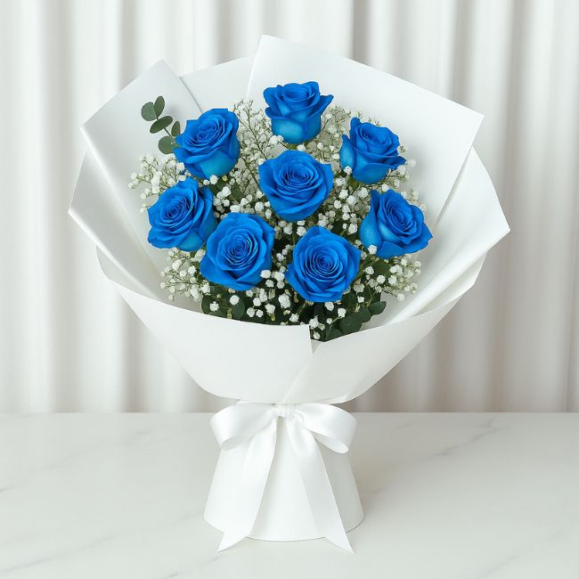 Surprise your loved ones with the Blue Rose Bouquet from Online Flower Shop Dubai. This elegant arrangement features 8 fresh blue roses complemented by delicate gypsophila, creating a charming and sophisticated gift. Perfect for birthdays, Women’s Day, anniversaries, Valentine’s Day, Father’s Day, or any special occasion, this bouquet conveys love, admiration, and appreciation effortlessly. Each bouquet is carefully handcrafted to ensure maximum freshness, vibrant beauty, and long-lasting appeal. Ordering online is simple and convenient, with same-day delivery available across Dubai. Make your gift truly memorable with this stunning blue rose bouquet, combining elegance, freshness, and heartfelt emotion in every stem. Celebrate every special moment with a luxurious floral gift that leaves a lasting impression.
