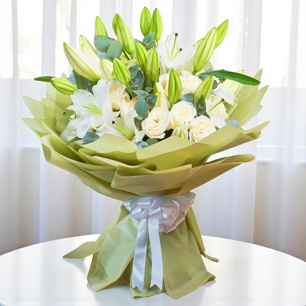 Celebrate elegance and purity with the Mixed White Flower Bouquet from Online Flower Shop Dubai. This exquisite arrangement features fresh white baby roses, elegant white lilies, and lush green fillers, creating a sophisticated and graceful display. Each flower is carefully handpicked to ensure maximum freshness, vibrant color, and long-lasting beauty. Perfect for birthdays, Women’s Day, anniversaries, or any special occasion, this bouquet conveys love, admiration, and heartfelt emotions. Its serene white blooms symbolize peace, purity, and elegance, making it an ideal gift for your loved ones. Order the Mixed White Flower Bouquet today from Online Flower Shop Dubai and surprise someone special in Dubai with a thoughtfully arranged, fresh, and stunning floral gift that enhances any celebration and leaves a lasting impression.