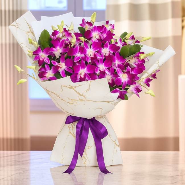 Enchant your loved ones with the Purple Orchid Bouquet from Online Flower Shop Dubai. This luxurious arrangement features fresh purple orchids, showcasing elegance, sophistication, and vibrant beauty. Perfect for birthdays, Mother’s Day, anniversaries, Valentine’s Day, or any special occasion, this bouquet conveys admiration, love, and heartfelt emotions effortlessly. Surprise someone special in Dubai with a stunning floral gift that radiates freshness, charm, and premium quality. Each bouquet is carefully handcrafted to ensure long-lasting beauty and exquisite presentation. Ordering online is simple and convenient, with same-day delivery available across Dubai. Make every celebration unforgettable with this breathtaking purple orchid bouquet, combining elegance, luxury, and vibrant freshness in every stem.