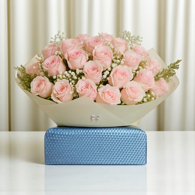 Thank You Bouquet from Online Flower Shop Dubai is a charming arrangement that expresses gratitude beautifully. Featuring 25 fresh peach roses, delicate white gypsophile, and lush green fillers, this bouquet creates a vibrant, heartfelt display. Perfect for birthdays, anniversaries, Women’s Day, or any special occasion, it instantly brightens homes and hearts. Each flower is carefully hand-selected and arranged to ensure premium freshness and long-lasting beauty. You can also add a personal note to make your gift more memorable. Order the Thank You Bouquet now for same-day delivery across Dubai and surprise your loved ones with elegance, warmth, and appreciation. Celebrate moments with this stunning bouquet that truly says “thank you” in the most delightful way.